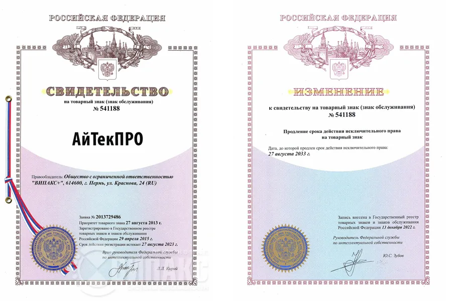 Свидетельство на товарный знак АйТек ПРО