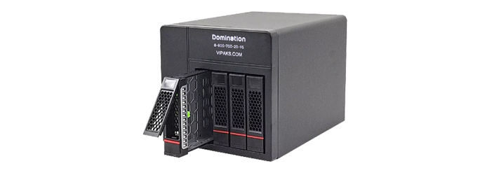 Сетевой видеосервер Domination c технологией записи на дисковый массив (MDR) рассчитан на подключение до 16 IP-камер с любым разрешением (лицензии на подключение включены в стоимость) и имеет: