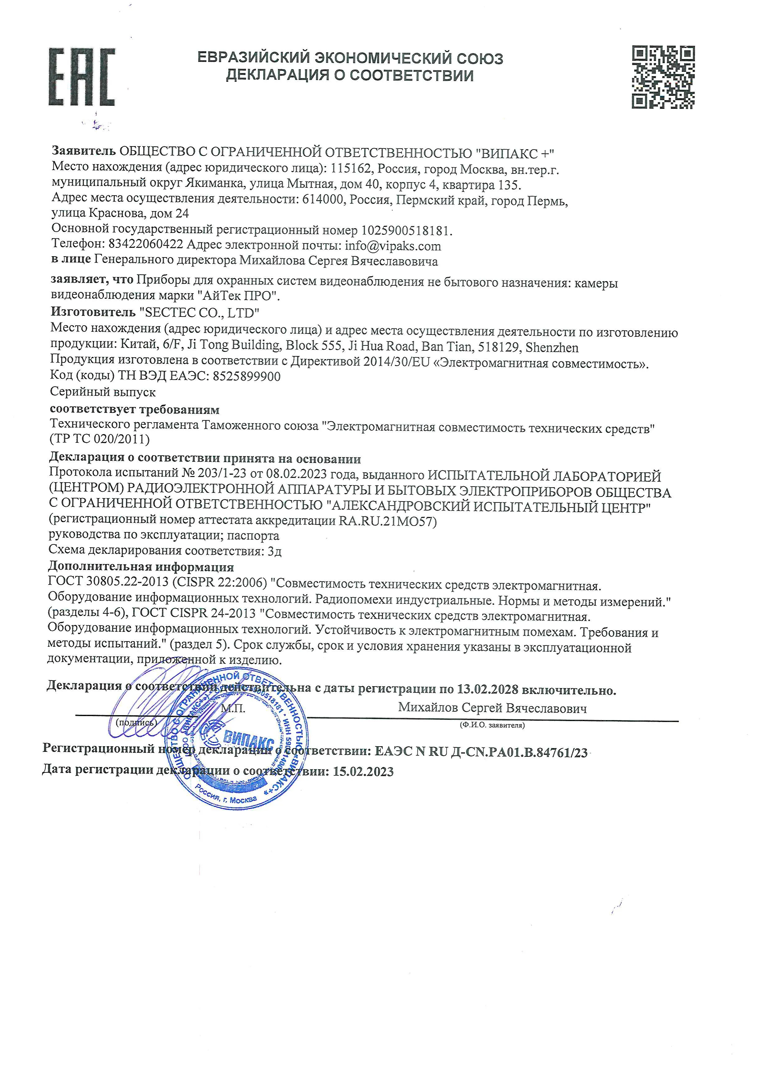 | Совместимость | ONVIF 20.06 |